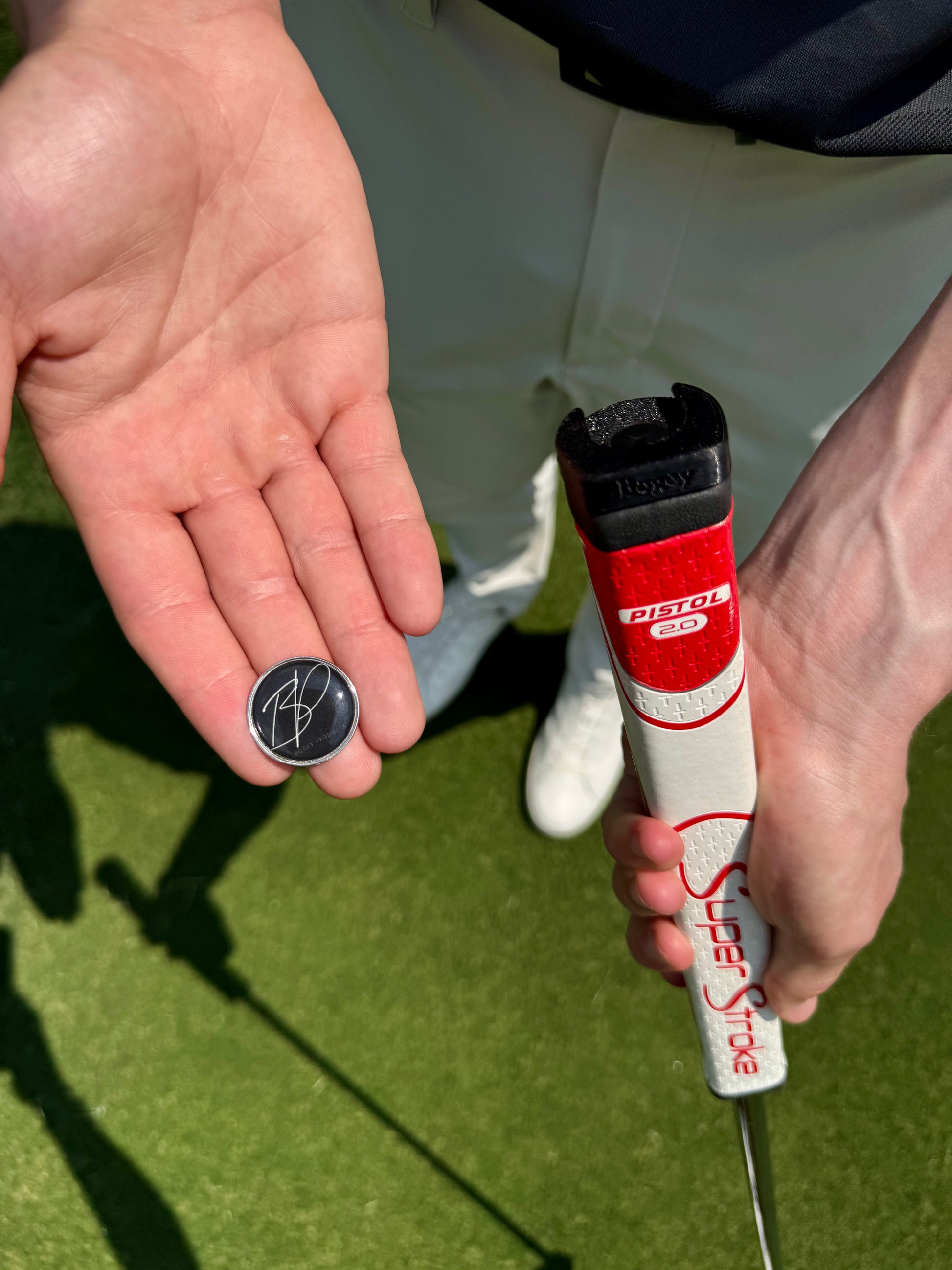 This magnetic ball marker holder is designed to screw securely into the end of a SuperStroke putter grip. It keeps your marker easily accessible during play, offering a convenient and secure solution for quick use on the green. Perfect for golfers who want to take their game to the next level!