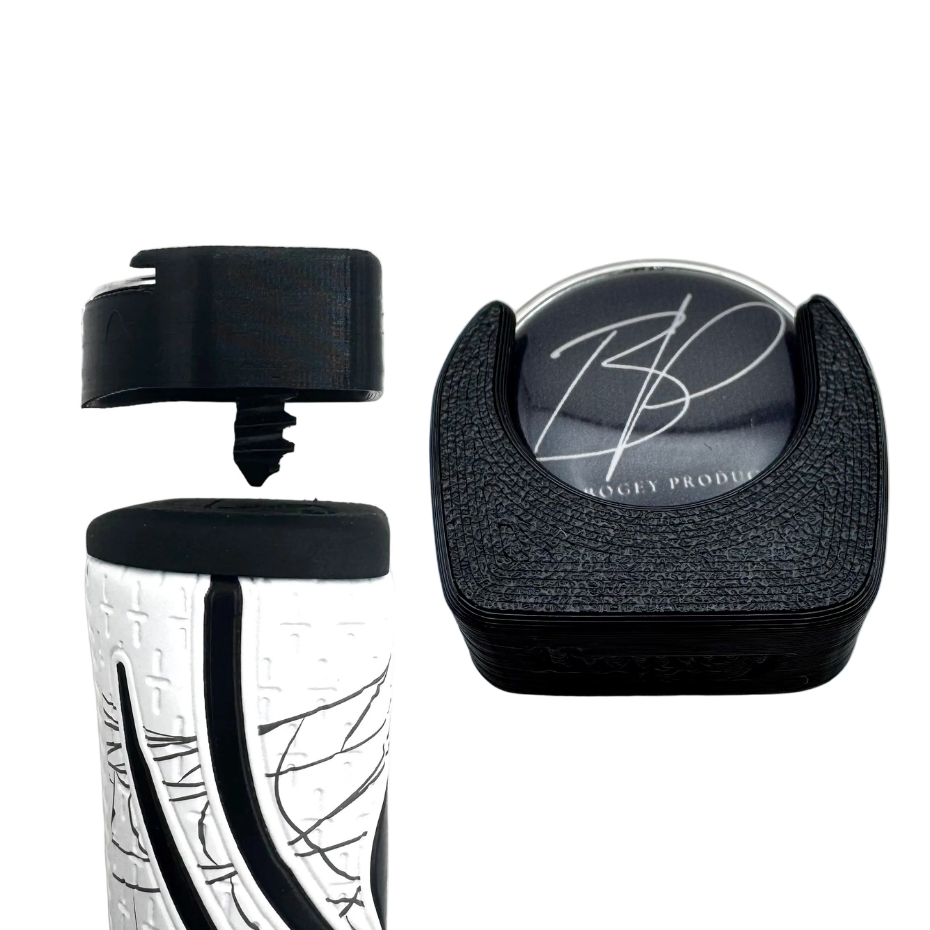 This magnetic ball marker holder is designed to screw securely into the top of a SuperStroke Pistol GTR 1.0 Putter Grip putter grip. It keeps your marker easily accessible during play, offering a convenient and secure solution for quick use on the green. Perfect for golfers who want to take their game to the next level!